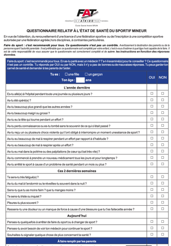 - LE QUESTIONNAIRE DE SANTE POUR LES MINEURS